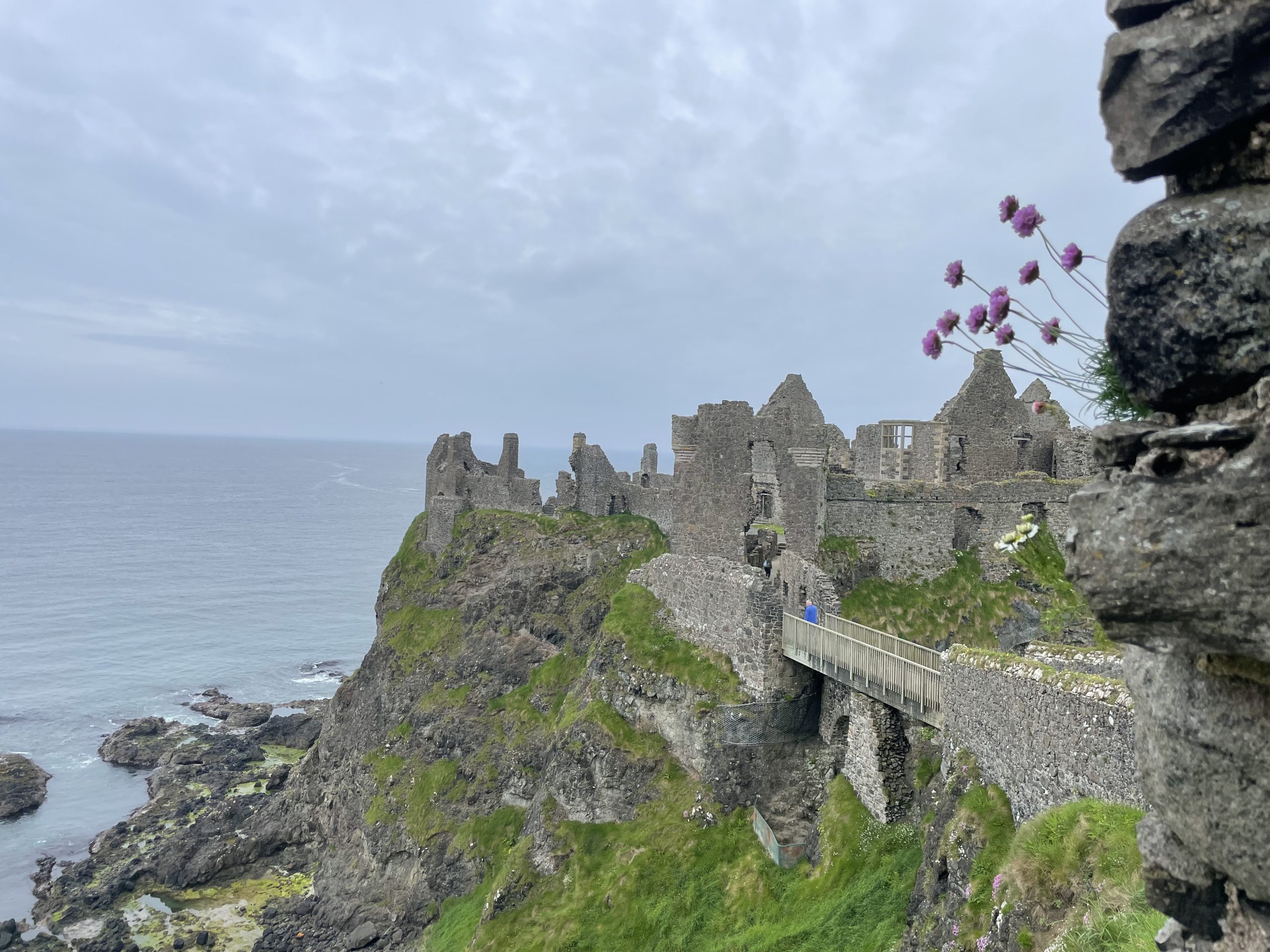 Dunseverick Castle est une ancienne forteresse (c’est vite dit..) située sur la côte nord de l’Irlande, près de la ville de Bushmills. Les ruines du château surplombent les falaises et offrent une vue imprenable sur l’océan. Doté d’une histoire remontant à plus de 1500 ans, Dunseverick Castle est considéré comme l’un des plus anciens forts d’Irlande. Il était autrefois un centre de pouvoir et de défense, mais aujourd’hui, seules des ruines subsistent. C’est un lieu chargé de légendes et de folklore.